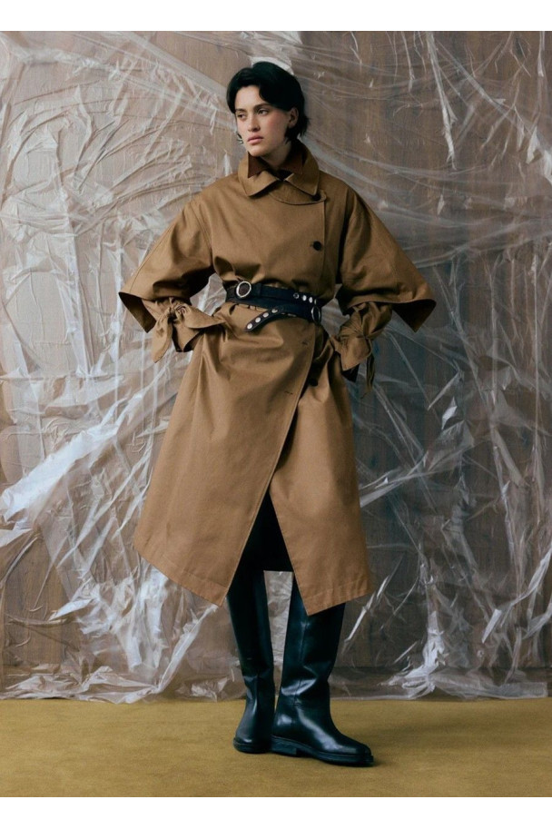 La gabardina Prague es una de sus piezas más icónicas.De corte holgado, presenta un diseño contemporáneo y sofisticado.