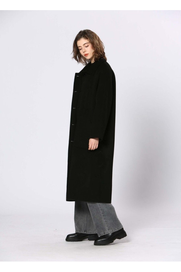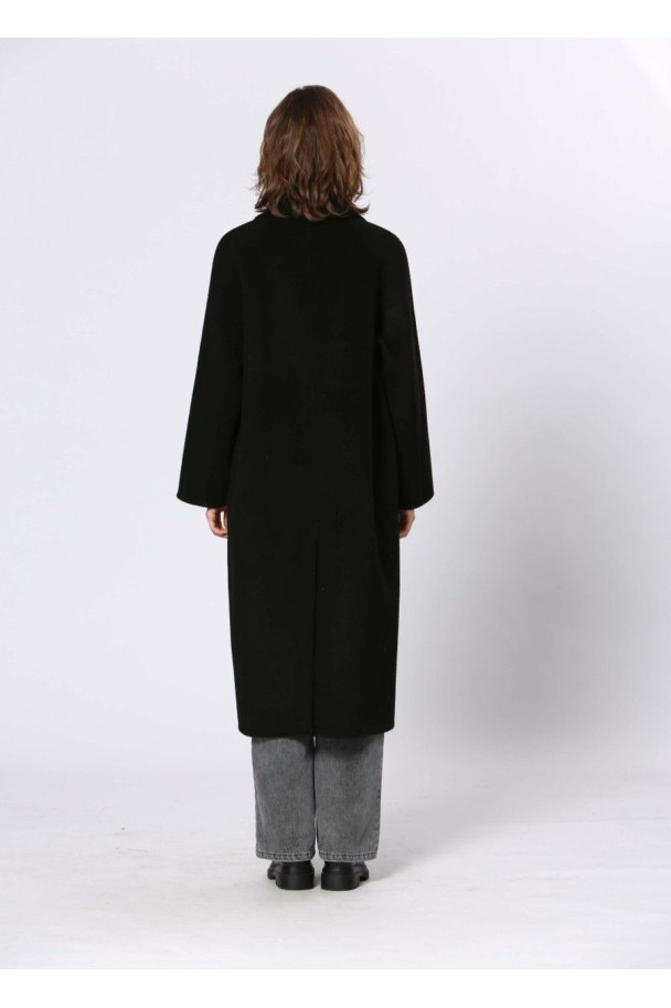Este abrigo negro de corte largo es una apuesta segura para quienes buscan una prenda atemporal, versátil y con un aire sofisticado sin esfuerzo.