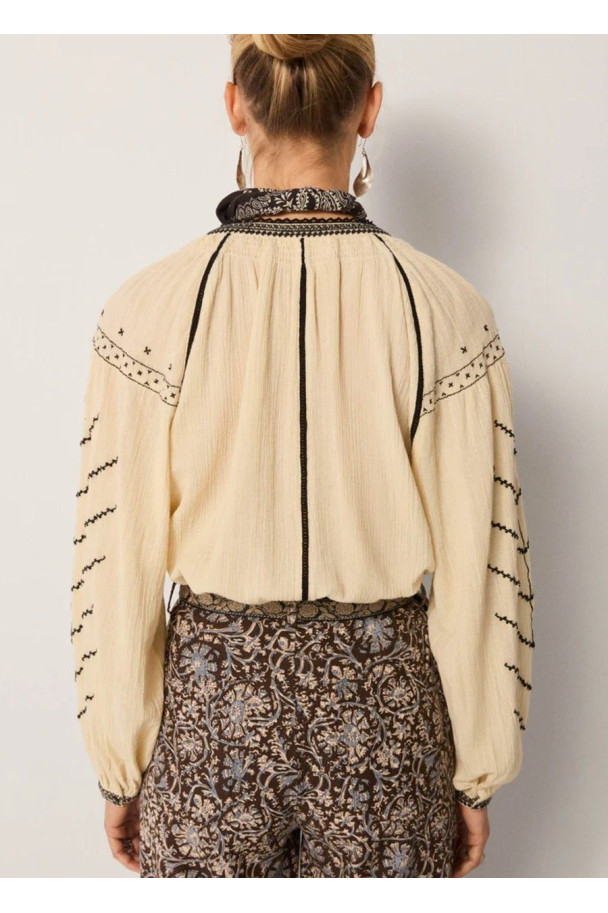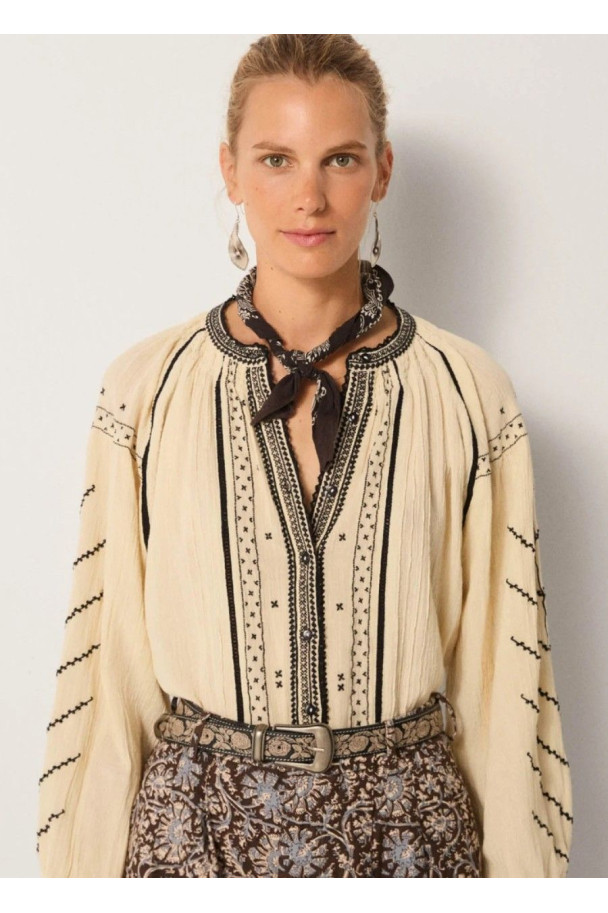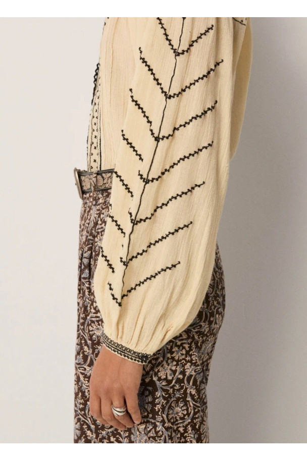 Perfecta para combinar con denim, pantalones de sastrería o faldas fluidas, la blusa Ringo añade un toque boho chic contemporáneo a cualquier look.