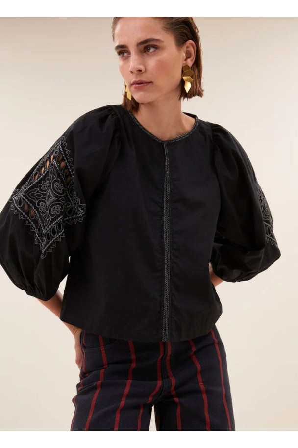Os presentamos la blusa Rae en su versión más sofisticada: negra y con bordado al tono.