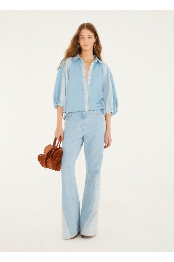 La camisa bicolor de Farm Rio reinterpreta un básico del armario con un enfoque fresco y actual. Confeccionada en un tejido tipo denim ligero, combina dos tonos de azul que crean un contraste sutil y moderno, aportando profundidad al diseño.