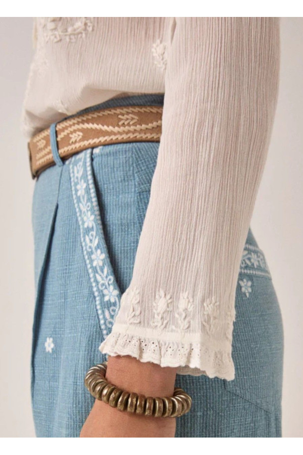 La blusa Gabriella de Maison Hotel refleja el espíritu bohemio de la marca con un diseño delicado y lleno de matices.