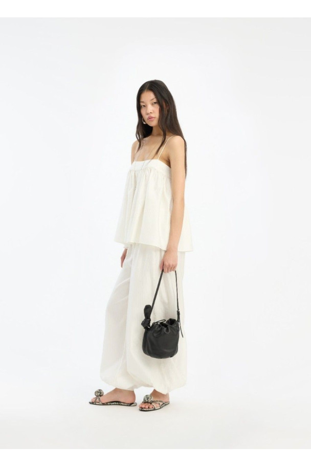 El Striped Slip Top de ROTATE es un top ligero de estilo delicado y femenino confeccionado en un tejido fluido con sutil textura a rayas.