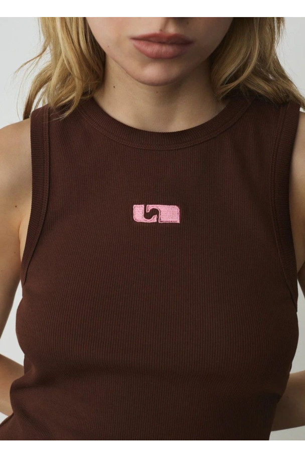 Top en tono marrón chocolate de punto canalé, con silueta fitted que se ajusta al cuerpo y potencia una estética limpia y depurada.