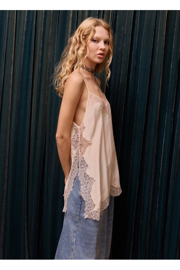 Top lencero de seda de líneas delicadas y estilo femenino, confeccionado en un tejido ligero y fluido con acabado suave.