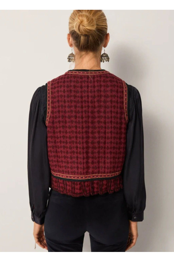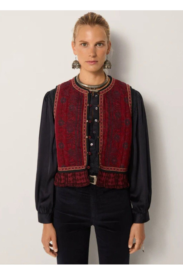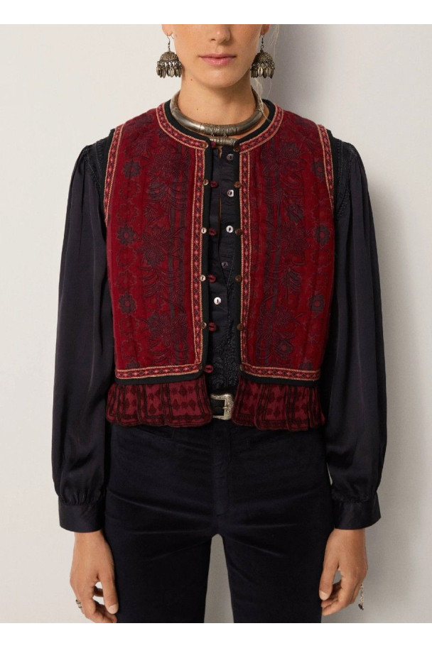 El chaleco Casilda  es una pieza que encarna la esencia más refinada del estilo bohemio de Maison Hotel; artesanal, sofisticado y con un aire de herencia vintage.