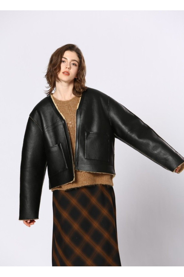 Su silueta recta, ligeramente oversize, aporta un aire moderno y relajado, mientras que el exterior efecto piel de acabado mate le da ese toque urbano y sofisticado.