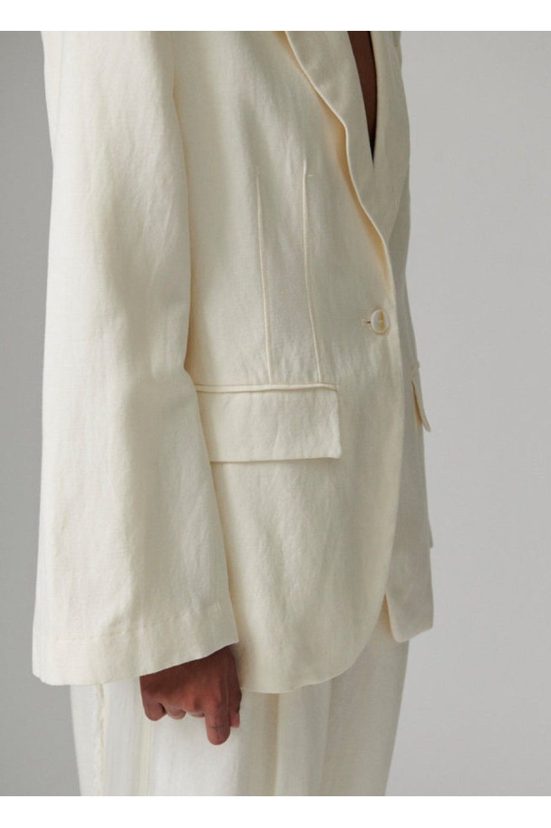 La chaqueta Fiona es una pieza de sastrería contemporánea que combina elegancia clásica y un aire relajado característico del diseño escandinavo.