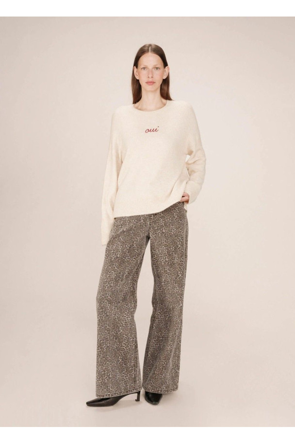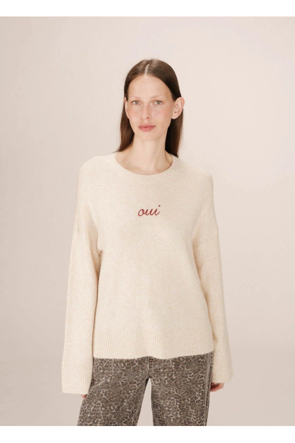 Su escote redondo y el detalle bordado de la palabra “oui” en contraste en el pecho, le añaden un aire chic y femenino muy francés.