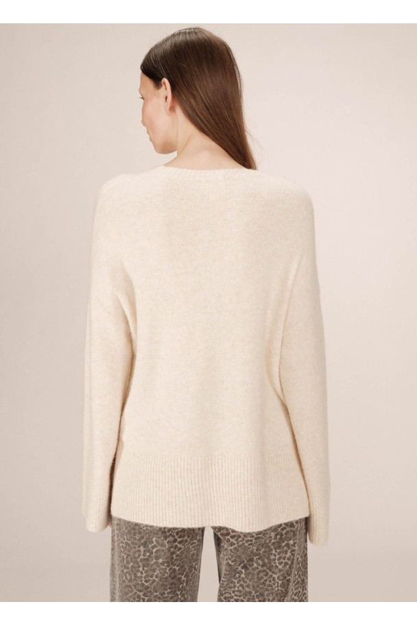 Confeccionado en un punto suave y ligero, destaca por su corte recto y holgado que aporta comodidad sin perder elegancia.