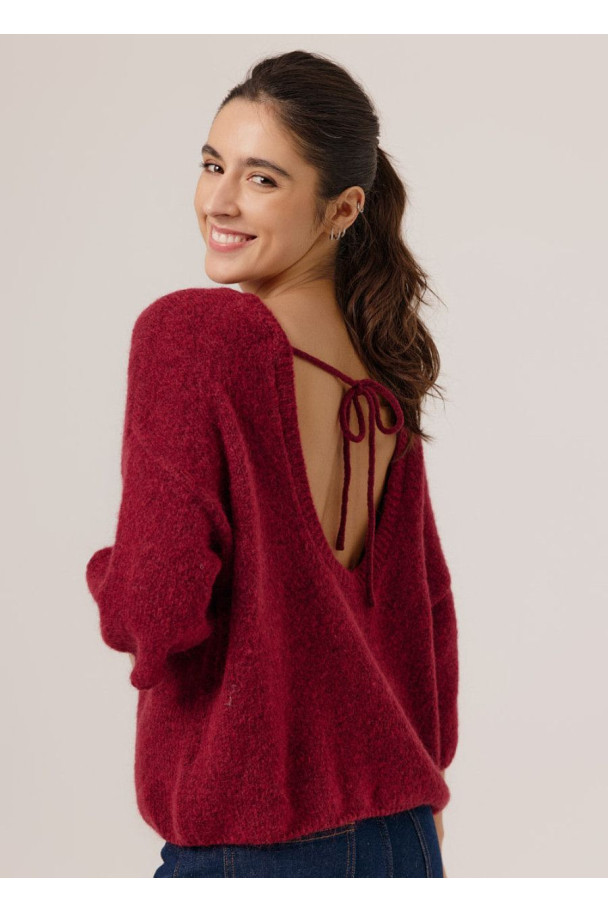 El jersey Elinor es una prenda tan femenina como confortable. Su diseño de cuello y manga amplia le aporta un aire relajado y elegante, mientras que la espalda abierta con lazada introduce un toque inesperado y sensual sin perder sutileza.