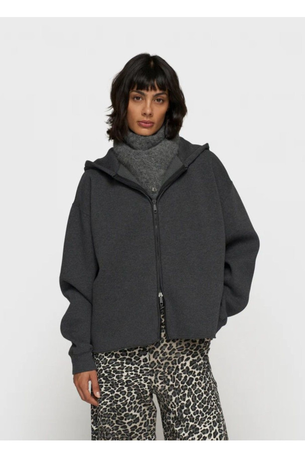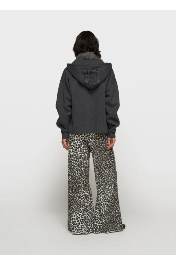 De corte holgado y relajado, cuenta con capucha amplia, cierres de cremallera frontal y mangas caídas, lo que le aporta un aire desenfadado y contemporáneo.