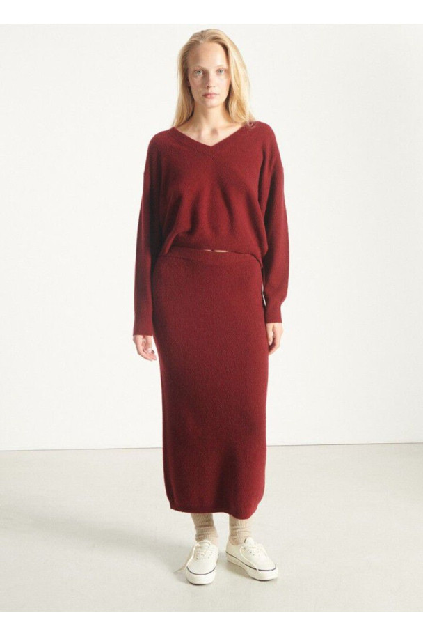 El estilo relajado y sofisticado de American Vintage vuelve a brillar esta temporada en Alejandra Montaner con el nuevo jersey en color cherry, una pieza que redefine el confort con un toque de elegancia atemporal.