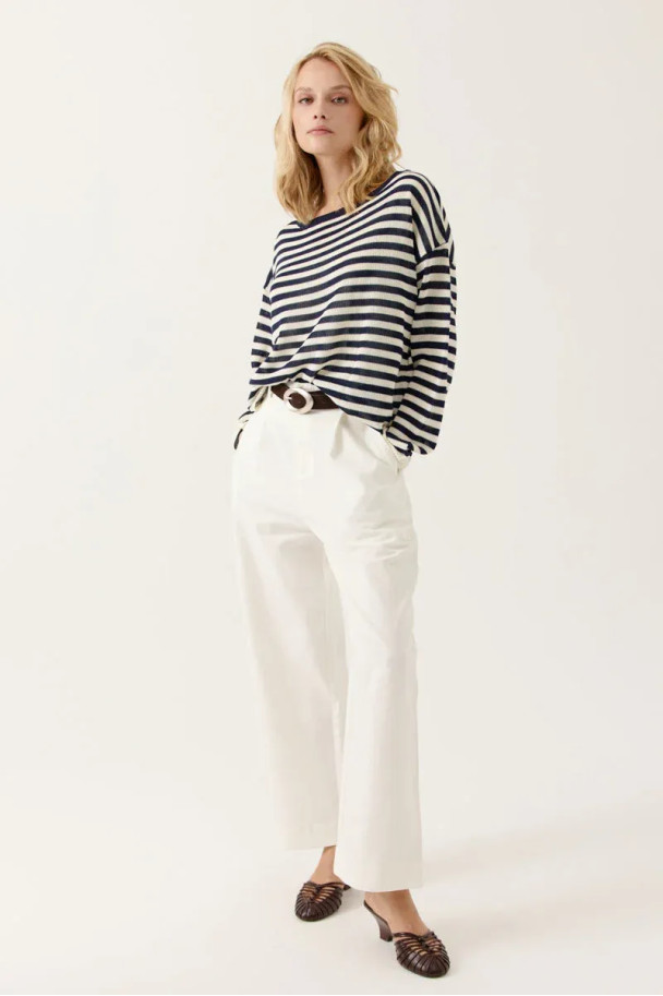 Un básico renovado de inspiración marinera, perfecto para crear looks atemporales, frescos y con un toque chic.