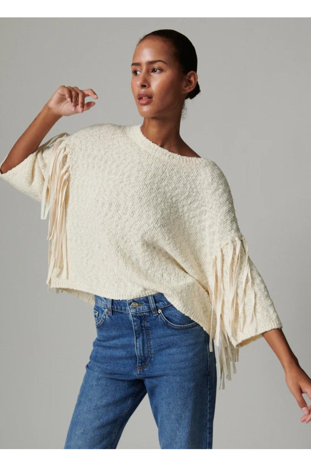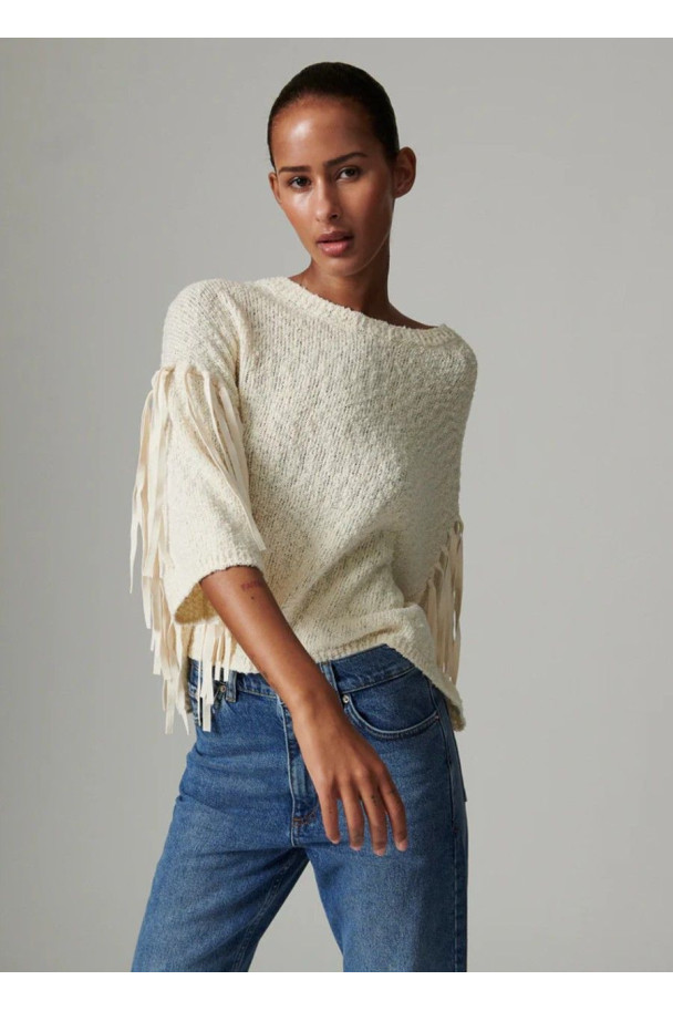 Confeccionado en un tejido de punto suave y agradable al tacto, el jersey Baptiste destaca por el detalle de flecos en las mangas, que aportan movimiento y un toque distintivo al diseño.