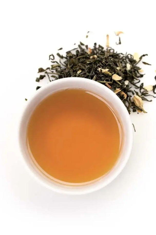 El té verde ecológico se perfuma de manera natural con flores de jazmín, creando un aroma envolvente y sutilmente dulce. La base vegetal aporta frescura y ligereza, mientras el jazmín despliega una nota floral refinada y armoniosa.