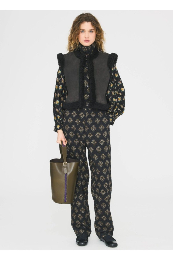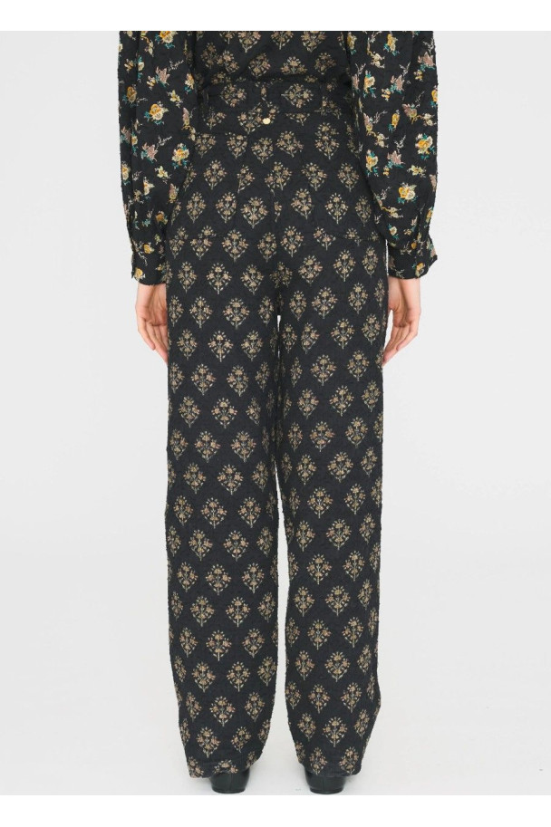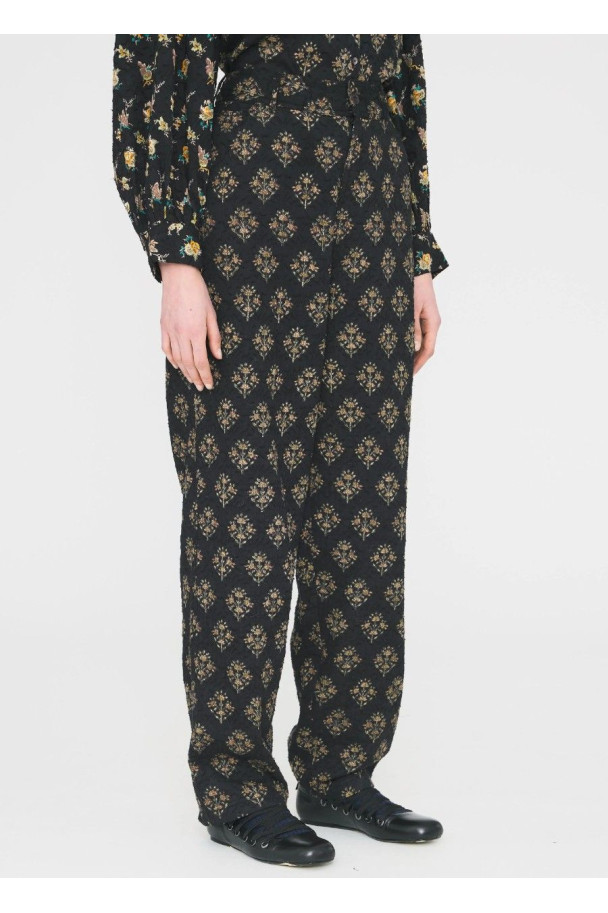 Con un aire boho-chic y un estampado atemporal, el pantalón Chino en jacquard de algodón negro es una pieza clave para quienes buscan estilo y comodidad.