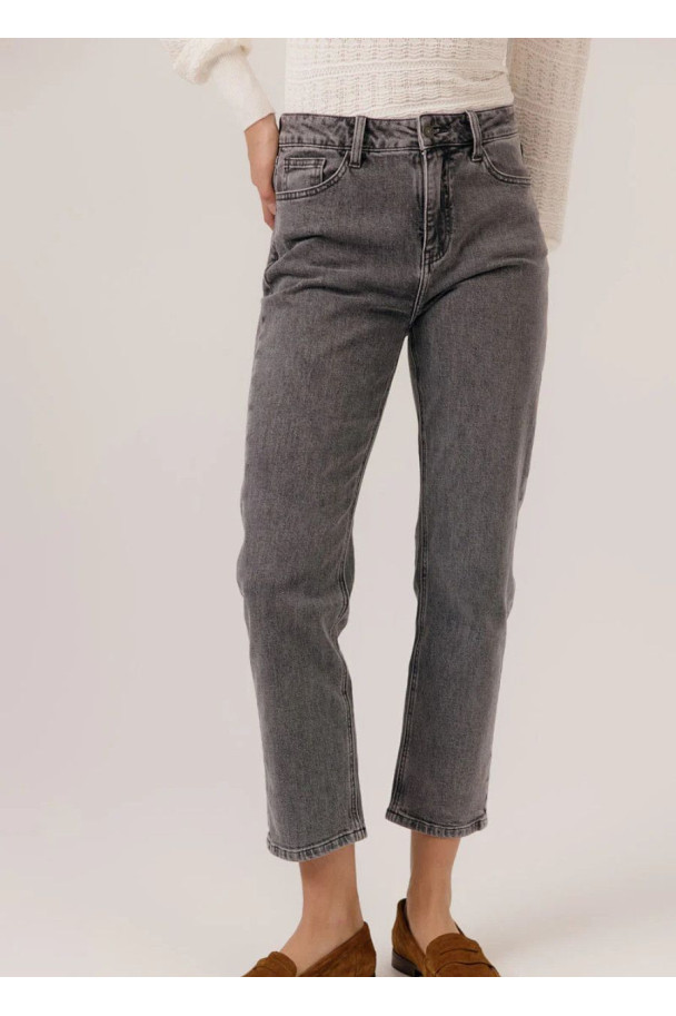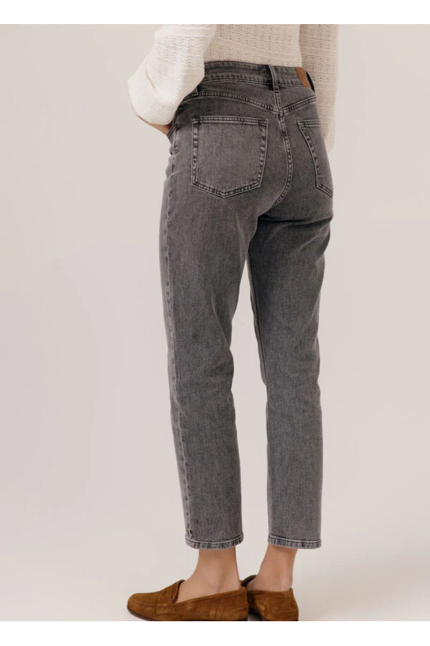 Con un diseño de corte recto y tiro alto, realza la silueta y aporta un aire relajado y moderno. Su tono gris lavado le da un acabado urbano y versátil, ideal para combinar con prendas básicas o con piezas más sofisticadas.