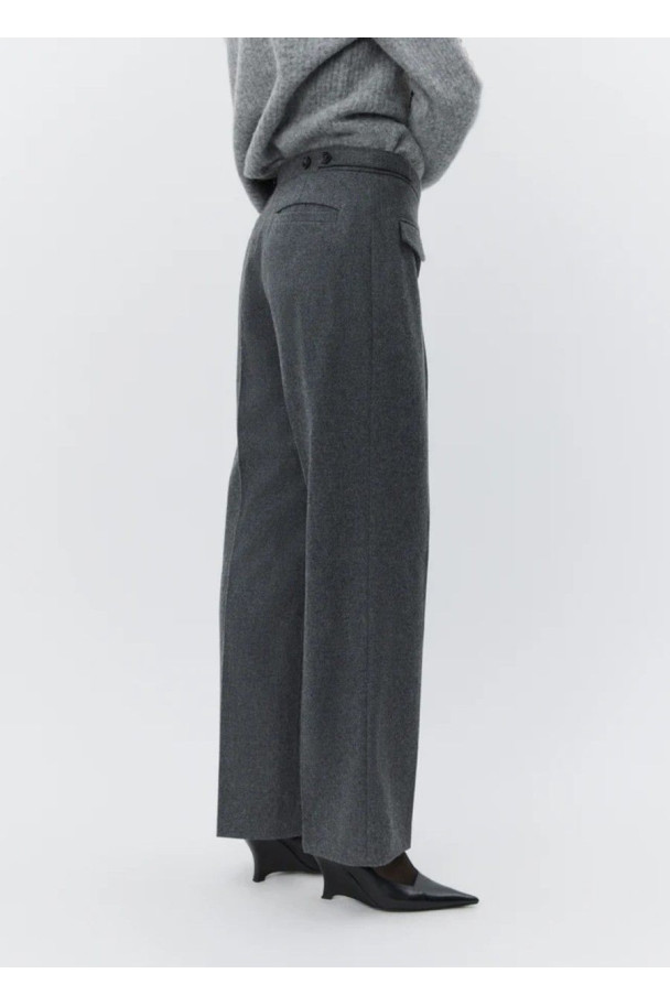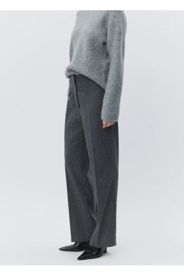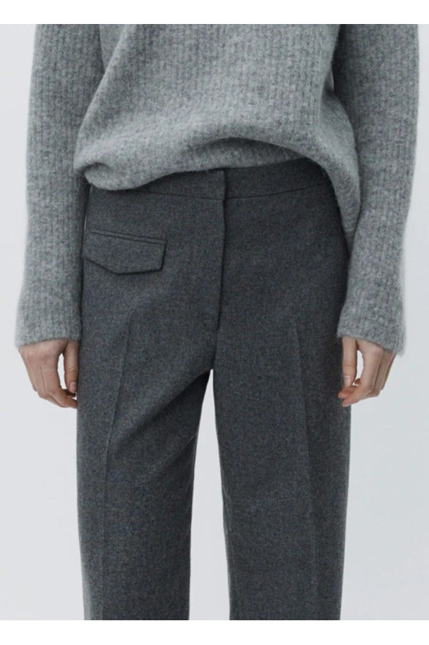De tiro alto y corte recto ligeramente amplio, está confeccionado en un tejido de lana suave que aporta cuerpo y una caída impecable.