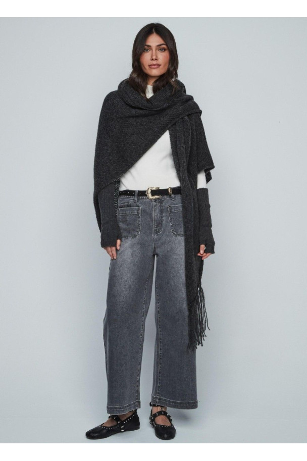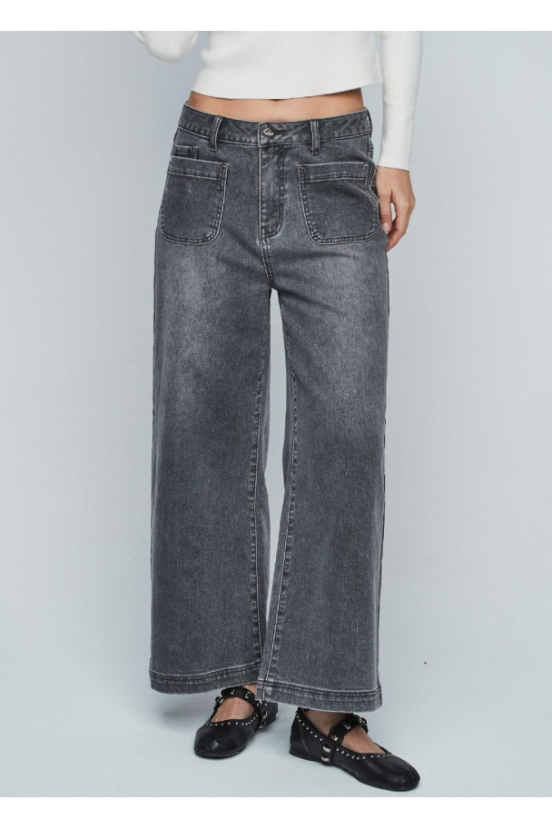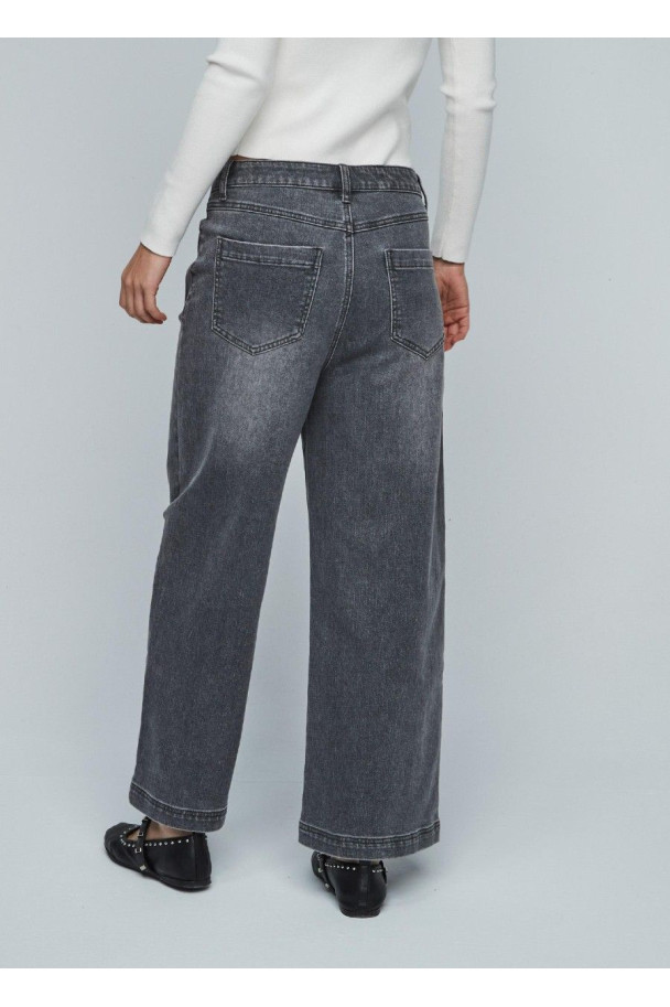 El tono gris lavado le aporta un aire urbano y versátil, ideal para combinar con jerséis, blusas o chaquetas de la colección.