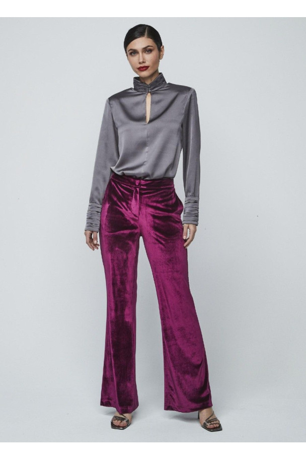 El pantalón Karen aporta un toque de sofisticación y glamour a cualquier look. Confeccionado en un suave terciopelo, combina elegancia y comodidad en una prenda ideal para las ocasiones más especiales.