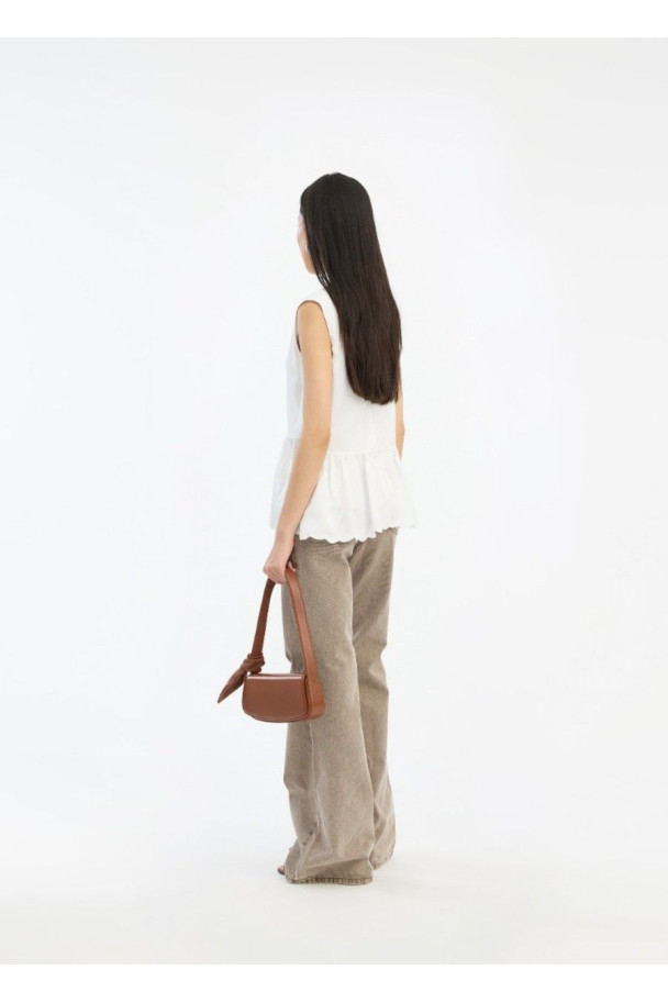 Los Flared High-Waisted Jeans Taupe de ROTATE destacan por su cintura alta y pernera acampanada, que alarga visualmente la silueta y aporta un aire contemporáneo con inspiración retro.