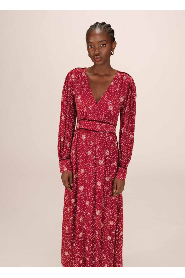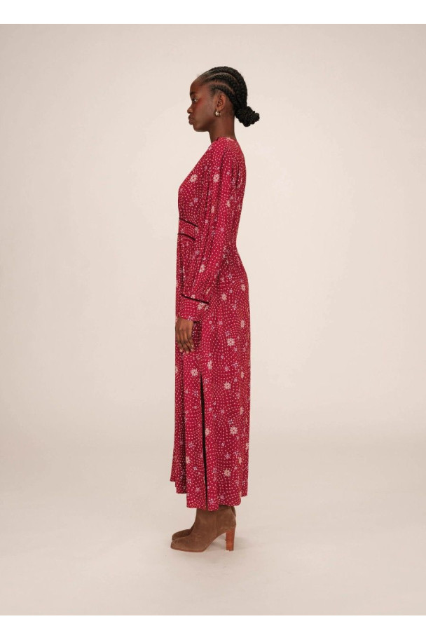 El vestido Sensible rinde homenaje al espíritu de los años setenta con su estampado floral en tonos vibrantes y su silueta fluida de aire bohemio.